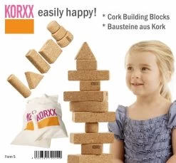 KORXX Kurk Blokken Form Starter – 21 Bouwstenen Met Katoenen Zak