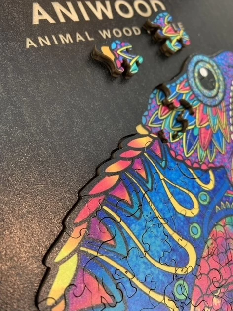 Deze prachtige houten kameleon van de Aniwood vormenpuzzels is een ontspannende uitdaging voor kinderen, jongeren en volwassenen vanaf 8 jaar, beginnend of ervaren puzzelaar. Je kunt de puzzel op verschillende manieren in elkaar te zetten.