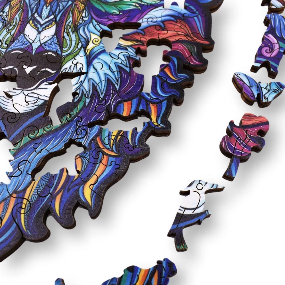Puzzelen is een zeer rustgevende en ontspannen bezigheid. Met deze prachtige houten Aniwood legpuzzel is het puzzelen niet alleen rustgevend, maar maak je ook nog eens een prachtig kunstwerk. Je kijkt je ogen uit naar de mooie uitdagende vormen en dieren verstopt in de puzzelstukjes.