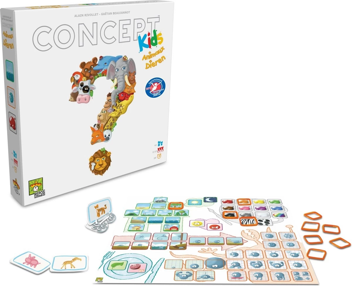 Concept Kids Dieren is een raadspel en de kinderversie van Concept en geschikt voor kinderen vanaf 4 jaar oud. Dit spel is een coöperatief spel, waarbij je niet tegen elkaar, maar met elkaar speelt.