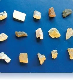 ● Inclusief 12 kleine mineralen zoals graniet, potloodsteen, gesso, marmer, slangsteen, calciet, kwarts, fosforiet, grijze rots, plantenfossiel