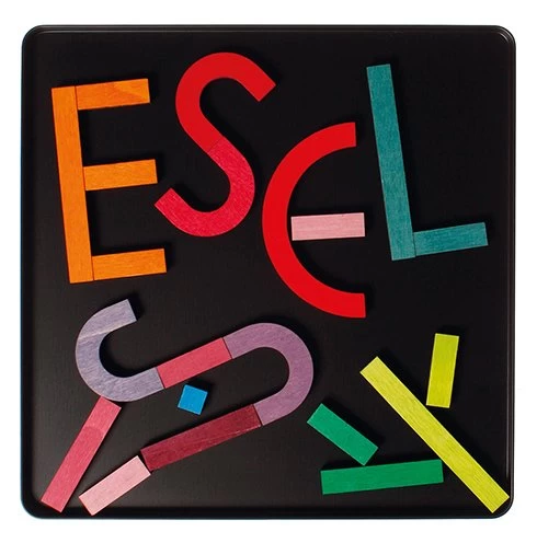 De houten vormen zijn zo gemaakt dat je elke letter kan maken. Leer spelenderwijs hoe bepaalde letters constructief in elkaar zitten. Met de vormen kan je ook andere figuren maken. In totaal zijn er 77 houten magneet onderdelen.