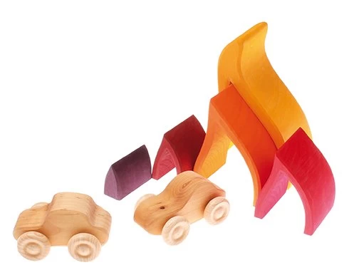 Dezen vijfdelige set vlammen in geel- en roodtinten past prima bij de regenbogen, de golven, de bloem en natuurlijk heel veel andere blokken en materialen van Grimms. De hoogte van dit onderdeel Vuur, dat ook een onderdeel is van de Grimms vier elementen puzzel, is 16 cm hoog.