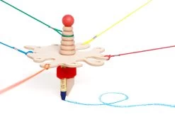 Gebruik je een stift of wasco (meegeleverd wordt een Stockmar bijenwaskrijtje) dan kun je tekenen op een vel papier, binnen op de grond of op een tafel, maar dit spel is ook uitstekend geschikt om buiten te spelen op straat of op het schoolplein met stoepkrijt! Met de touwtjes gespannen en in overleg met elkaar kun je een liggende acht maken, een gezicht, een bloem, een cirkel en nog veel meer. Maar let op! het vraagt concentratie, samenwerking, communicatie en creativiteit om samen een mooie tekening te maken!