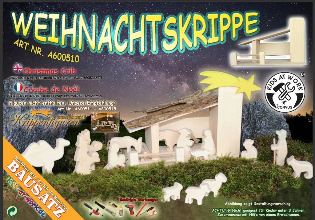 Met dit DIY zelfbouwpakket kerststal of boerderij, maken kinderen makkelijk een boerderij, een poppenhuis, paardenstal, garage, ziekenhuis, of kerststal. Dit eenvoudige gebouw laat hun fantasie rijkelijk stromen. Want je kunt echt alles verzinnen wat je maar wilt en rond kersttijd kun je fijn je eigen kerststal maken. Maak van ons snijhout figuurtjes en je stal is compleet. Misschien wil je hem nog schilderen met onze <a