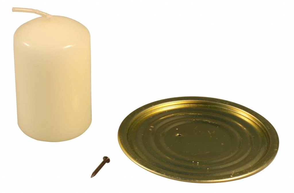 6 blikken met glad oppervlak, 3 klein, 3 groot, inclusief kaarsenhouders en draaiende onderzetters, ijzerdraad en bevestiging om aan een lampionnenstok te binden.