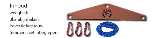 De kinderweegschaal is inclusief 3 karabijnhaken en een touw om de weegschaal te bevestigen.