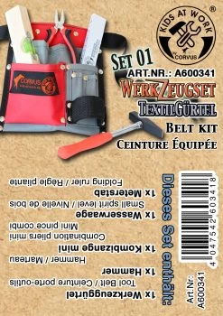 Deze fijne gereedschapsgordel van textiel kun je verstellen of innemen door er even naald en draad bij te pakken. De stoere tas aan draagriem voor het kindergereedschap, is gevuld met een duimstok, een penhamer met hickory houten handvat, een doosje goudkleurige schroeven, en 2 schroevendraaiers met kruiskop. Een ideale beginnersset met kinderformaat gereedschap. Gereedschap voor kinderhanden is ergonomisch verantwoord en werkt ook motiverend voor kinderen, omdat ze er goed mee overweg kunnen. Zo blijft klussen leuk en overzichtelijk.