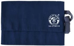 Het formaat van dit etui is 30x35cm open, 20×30 gesloten en het blauwe etui van stof (100% katoen) heeft 4 opbergvakken, een klittenbandsluiting en bevestigingsband