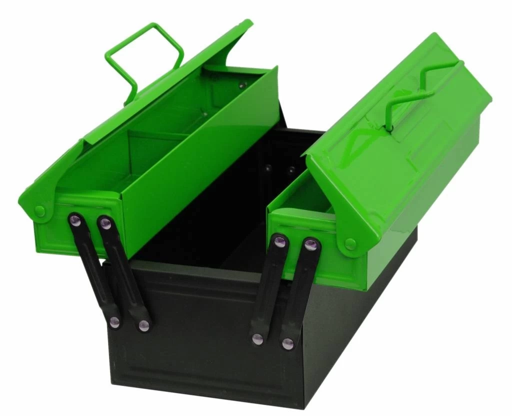 Zo groen dat hij buiten in het gras niet misstaat! Kies voor een stevige gereedschapskist!