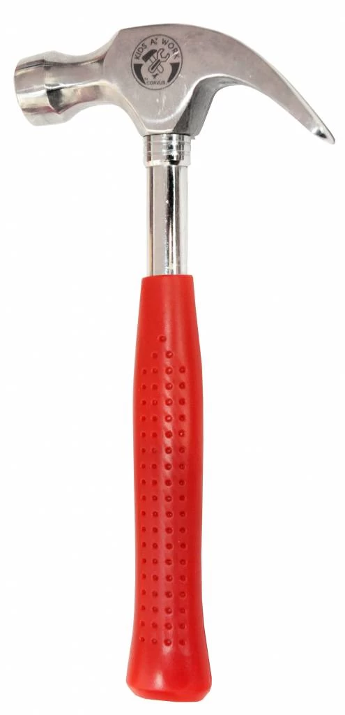 Als een hamer goed in de hand ligt, kun je goed timmeren. Omdat hier het zwaartepunt dichterbij ligt, houdt de kinderhand deze hamer makkelijker vast. Dat komt door het kortere handvat en zo kan een kind beter de spijker op zijn kop slaan!