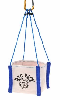 Deze mini uitvoering van de kabel is erg compleet. Bijgeleverd is, buiten de touwen en de nodige haken en katrollen, ook een soort ‘big pack’. De 4 stuks zakjes van stof waar je jouw favoriete dingen in kunt verplaatsen lijken op flinke Kuub zakken.