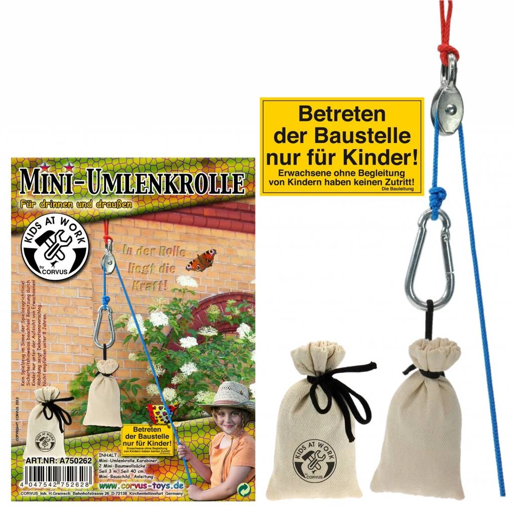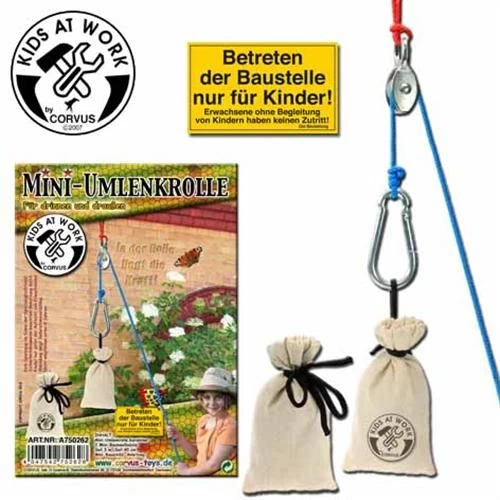 Deze mini katrol is een kleine takel die je in je eigen kamer kan ophangen om zo te ontdekken hoe een katrol werkt. Spelen met touwen is echt leuk onbtdekspeelgoed en het is spannend om te ontdekken hoe je een gewicht lichter kunt maken door een takel te gebruiken. Hijskraan speelgoed is leerzaam en leert kinderen over krachten verdelen.