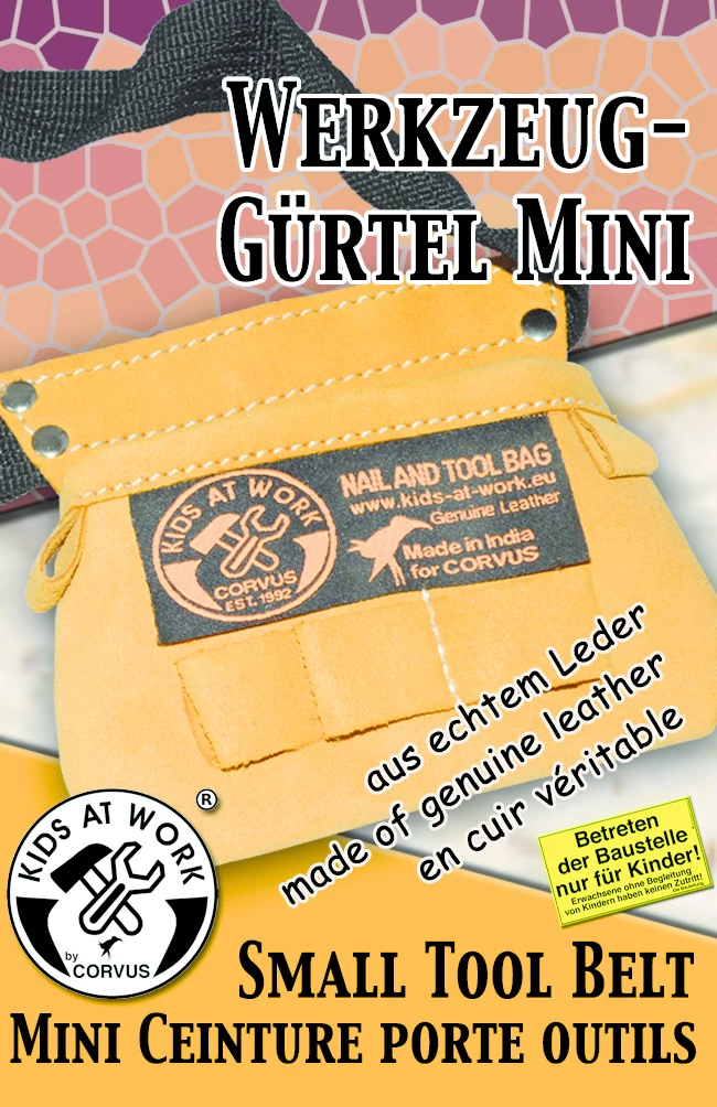 Je gereedschap wil je natuurlijk veilig opbergen. Dat kan met deze gereedschapsgordel van leer voor om de heup van je kind.