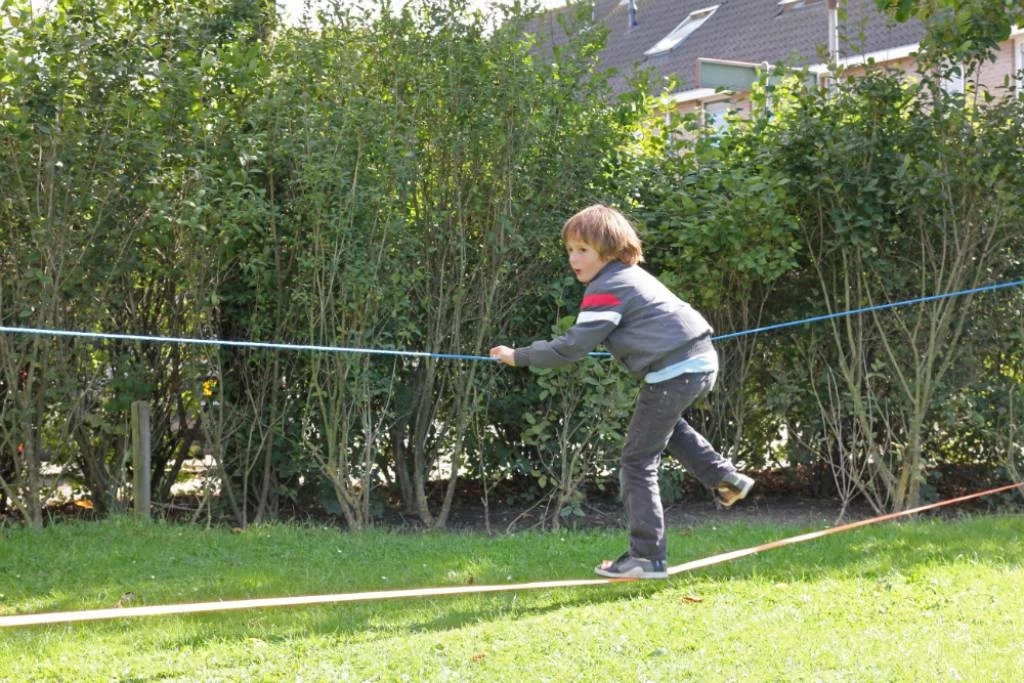 Word een kunstenaar in balanceren met deze koninklijke oranje slackline. Kun je al het cirus in?