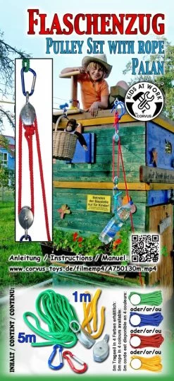 Voeg gewoon een touw en een paar katrollen samen met een karabijnhaak en je hebt urenlang speelplezier.