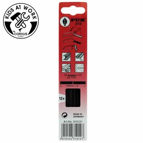 Deze zaagjes zijn geschikt voor de handzaag A600022. Een fijne zaag om mee te nemen tijdens natuurtochten voor het doorzagen van kleine takken en twijgen of in en om het huis voor het zagen van houtjes, metaal, kunststof, speksteen en andere doorzaagbare materialen