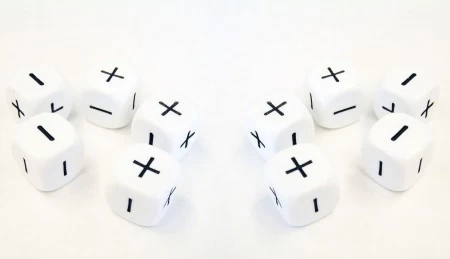 Met de dobbelsteen met de symbolen plus (+) en min (-) kunnen kinderen leren optellen en aftrekken door spel.