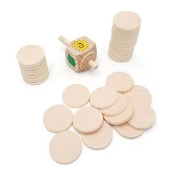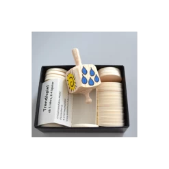 Dit houten tolspel is een oud Joods spel afkomstig uit de middeleeuwen met de oude symbolen. Verschillende varianten zijn naar eigen invulling of vindingen mogelijk.