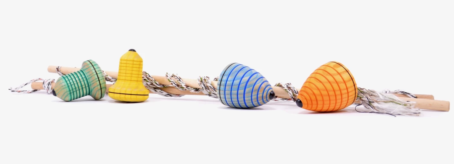 Tollen van Mader worden handgemaakt ofwel hand gedraaid in een originele tollenfabriek in Oostenrijk en ook met de hand geverfd met natuurlijke inkten.