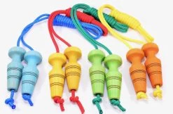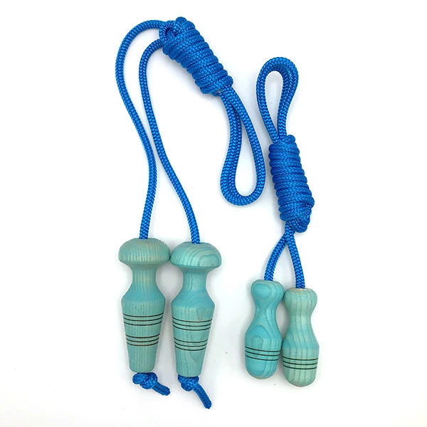 Met je tong tussen de tanden leren touwtje springen? Dat kan met dit mooie springtouw met houten handvat.