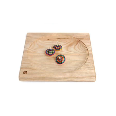 Mooi massief notenhouten bord om je tollen op te bewaren of om ze op te laten draaien. Zo kan je altijd en op elk moment een tol draaien en je behendigheid vergroten, zonder dat je er achteraan hoeft te rennen of kruipen. Staat ook mooi met tollen zonder dat je speelt!