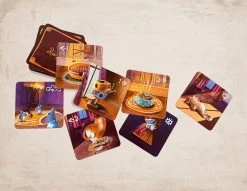 Inhoud: spelbord, 4 katten en 1 hond, 4×4 lopers met muis op de achterkant, 4 voorwerpentegels (beker, lade, kaas, doos), 20 gelukskaarten, 1 spinner ‘