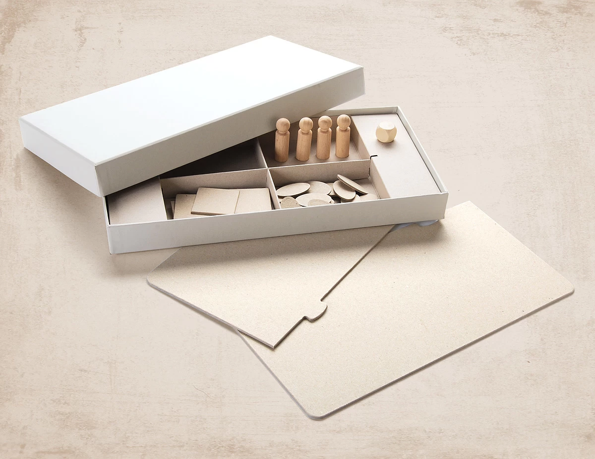 Er zijn veel verschillende bordspellen, maar geen daarvan is wat je zoekt? Misschien heb je een eigen verhaal en heb je je de personages ook al bedacht? In deze kit vind je alles wat je nodig hebt om je plan te realiseren! Je kunt een potlood, een viltstift of goede verf gebruiken, wat je ook bij de hand hebt of waarmee je ook wilt werken. Misschien vind je het leuker om het spel te beplakken?