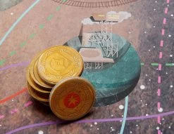 Inhoud: 1 spelbord, 4 ruimteschepen, 4 Space Pirates, 20 schatmuntstukken, 2 dobbelstenen, ruimte-regels
