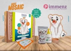Het maken van een mozaïek met Mosaibox is anders dan met MOSAIKIT waarbij je meer een mozaïek maakt zoals het origineel gaat, namelijk door de mozaïek stukjes op een ondergrond in te gipsen. Mosaibox ‘IJsbeer’ is een compleet DIY pakket waarbij je jouw mozaïek direct aan de muur ingelijst kunt ophangen. Je gaat aan de slag met alleen lijm en dus is het mozaïek maken een schonere bezigheid. De lijst heeft tevens de vorm van de gekozen afbeelding.