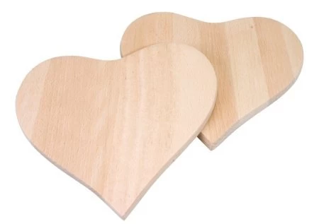 Twee houten broodplankjes in de vorm van een hart om creatief te bewerken, bijvoorbeeld met behulp van de houtbrandpen!