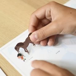 Vind op deze kleine stickerposter formaat A4, diverse pony- en paardenrassen, gereedschappen, accessoires… Kinderen plakken de stickers zelf op een A4-poster, die ze vervolgens kunnen ophangen om hun kamer te versieren. POPPIK bedenkt ontwerpen via een educatieve benadering. Ontdek met Poppik de nieuwe generatie stickeractiviteiten. Als kinderen een Poppik-kit openen, willen ze meteen met deze schattige, kleurrijke stickers spelen. De activiteit is eenvoudig voor jonge kinderen te doen en kan ingewikkelder worden door uit te breiden naar andere posters. Zo kan je kind alleen spelen zonder jouw aanwezigheid en leert het zich spelenderwijs en uit enthousiasme concentreren en zal moeiteloos op natuurlijke wijze langdurig met eenzelfde activiteit spelen.