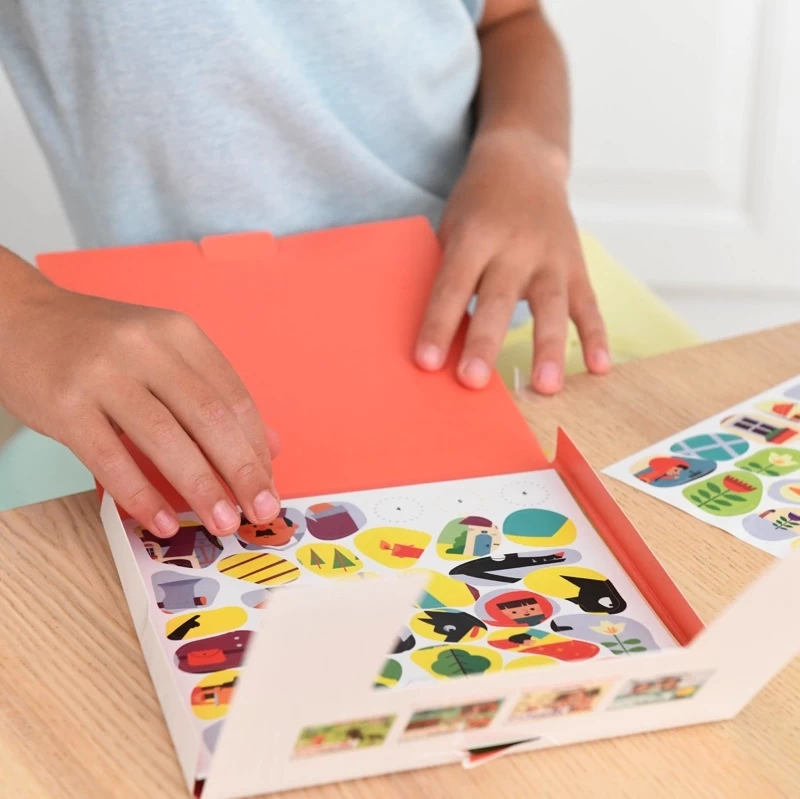 Deze stickers zijn een nieuwe originele en leuke manier om met taal te spelen! Het kind reconstrueert de 6 afbeeldingen van het sprookje Goudlokje en de drie beren en ontdekt al stickers plakkende het sprookje door de afbeeldingen in de juiste volgorde te plaatsen. Deze sets kaarten moedigen kinderen aan om een verhaallijn te herkennen en te maken. Ze oefenen tegelijkertijd hun fijne motoriek en zo oefenen ze ongemerkt ook taalvaardigheid.