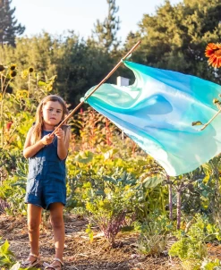 Niets is zo fijn als een goed stuk basisspeelgoed waar je alle kanten mee op kan. Deze playsilk is zo’n basis: er is niks wat zo’n stof níet kan tijdens een fantasiespel. Gebruik de stof bijvoorbeeld als rivier om op te varen, om een waterdans mee te dansen, om op te picknicken, om je pop mee rond te dragen, een vlag mee te knopen of je onder te verstoppen! De mogelijkheden zijn eindeloos.