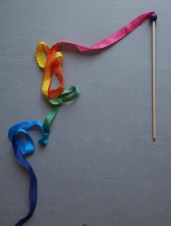 Wel bijna 3 meter lang zijden lint aan een houten stok van ca 30 cm met een houten stopkraal.Absoluut geweldig en voor vele kinderen favoriet speelgoed!Sarah’s Silks-producten zijn gemaakt van Chinese zijde geweven, geverfd en met de hand gezoomd door naaisters die vanuit huis werken in een klein dorp in de buurt van Suzhou, China.