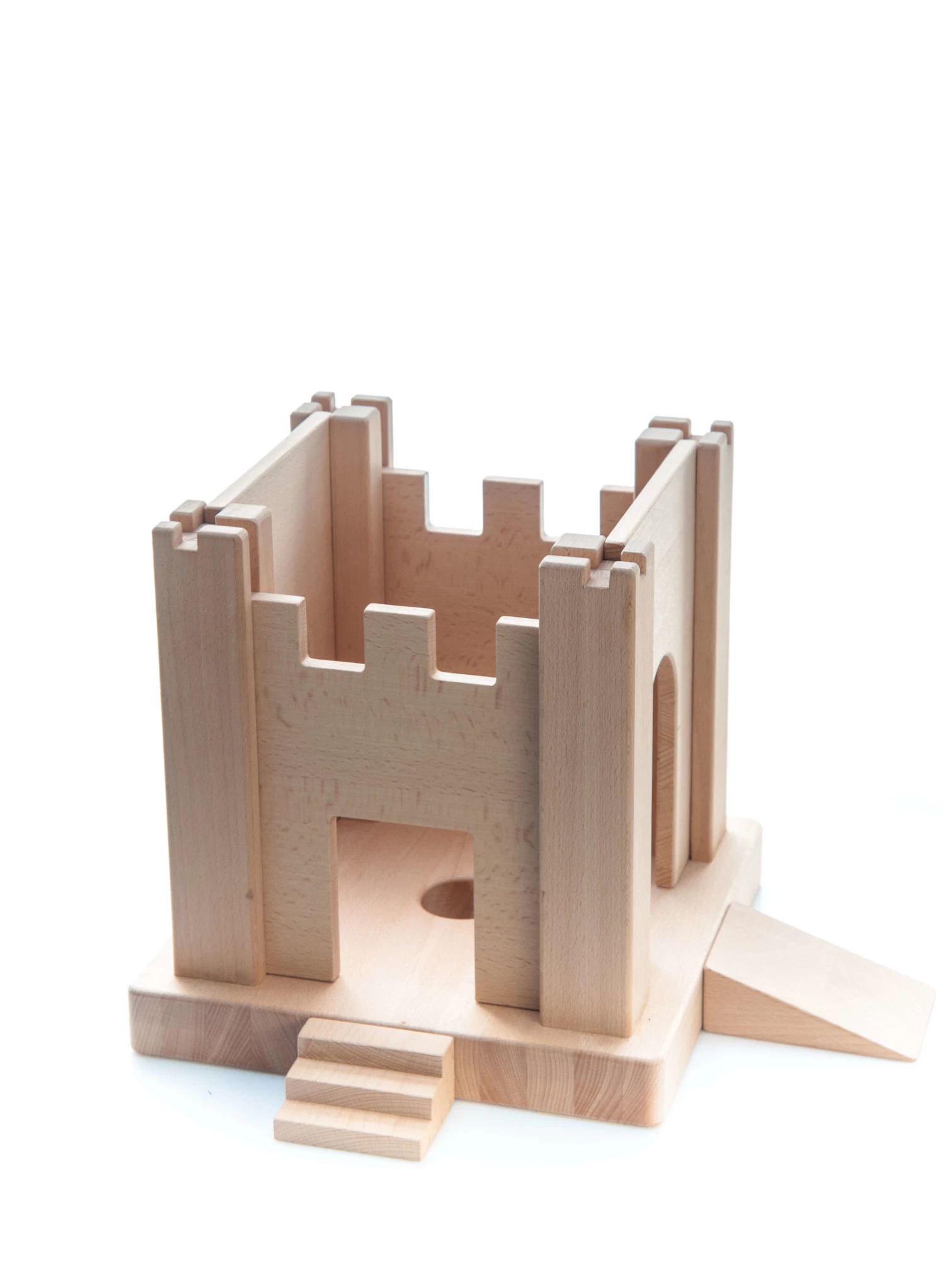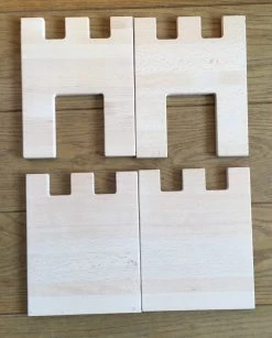 De speelkruk van beukenhout heeft een hoogte van 30 cm en heeft sleuven in de poten waar de verschillende schuifdelen in geschoven kunnen worden. Deze delen zijn bij de complete kruk inbegrepen, maar kinderen kunnen naar eigen idee ook eigen schuifdelen van karton of triplex maken. Zo maak je nog meer je eigen speelkruk. De kruk kan steeds anders gebruikt worden. Of je nu met je autobaan of treinbaan speelt, dorpen en steden bouwt, of gewoon een ridderkasteel maakt, een tunnel, poppenhuis of boerderij, de kruk past steeds weer in dat fantasierijke spel.