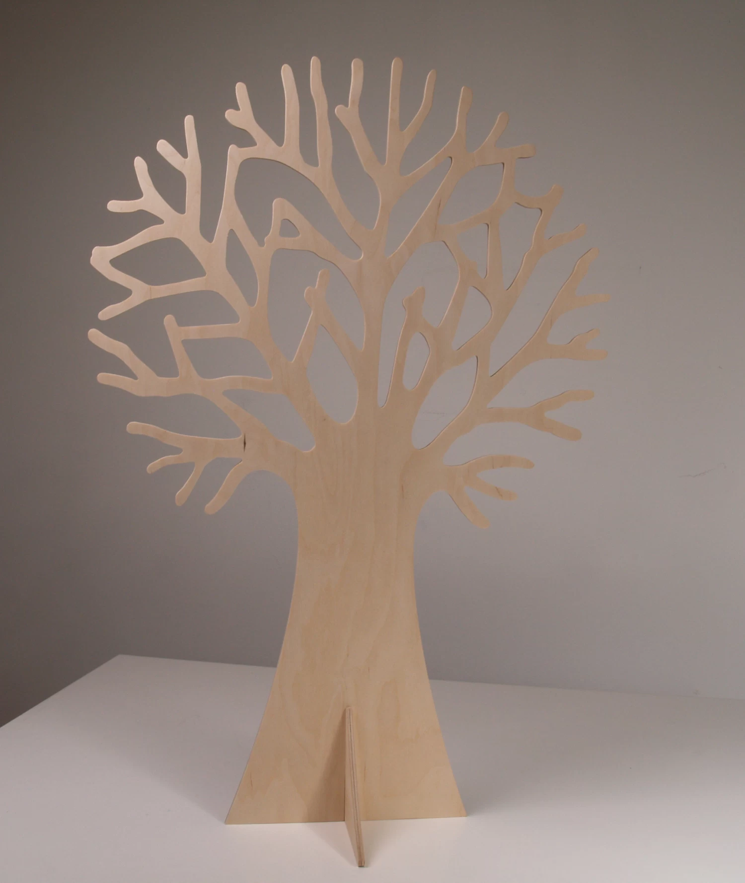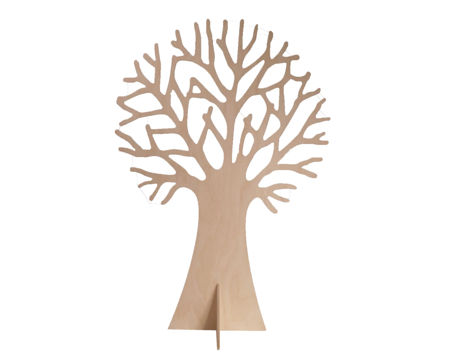 Deze sierboom is van Fins berkenplex en kan ter decoratie worden gebruikt. De boom is alleen aan de voorkant en de achterkant geschuurd en heeft een kruispasstuk om hem op ene kast of tafel te kunnen neerzetten. Het is handwerk, dus hier en daar kunnen wat onregelmatigheden zitten. Met deze boom maak je elk seizoen tot een decoratief succes. Je maakt elke seizoenscreatie die je maar wilt en je kunt de boom ook beschilderen met bijvoorbeeld onze <a