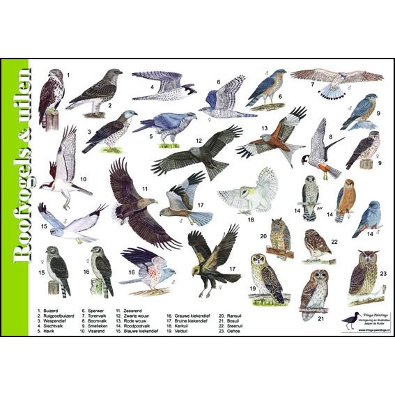 Welke roofvogels bestaan er en welke zijn hier te zien? Leer ze kennen en ontdekken met deze gedetailleerde kaart!