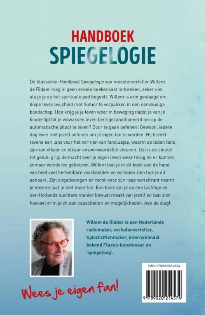 De laatste versie van het Handboek Spiegelogie van Meesterverteller, verhalenverteller Willem de Ridder is een handige en prettig in de hand liggende paperback geworden met een moderne uitstraling. Willem de Ridder weet diepe levenswijsheid over spiegelogie met humor te verpakken in een eenvoudige boodschap in dit fantastische boek dat eigenlijk in iedere boekenkast thuishoort. Hij vertelt ongedwongen en je leest dit boek in een keer uit, je bent vast gewaarschuwd. Daarna zal spiegelogie je moeilijk loslaten, want je merkt gewoon dat het in het leven zo werkt! Verteltrant neemt je mee en laat je niet meer los. Het leven is meer dan stress, moeten en doen zoals het hoort. Het leven is ook meer dan jij als mens, wandelend over de aardbol met doelen die stress veroorzaken en soms nutteloos lijken. We zijn met zijn allen verbonden. Energie is overal. Wij zijn energie.