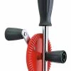 Alle tools zijn van roestvrij staal, schalen (het handvat) van transparant blauw Cellidor.