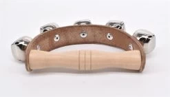 Met deze prachtige bellenkrans aan een lederen band met houten handvat is het heerlijk ritme tikken en met muziek meespelen. Gezien het kleine formaat perfect voor jonge kinderen!